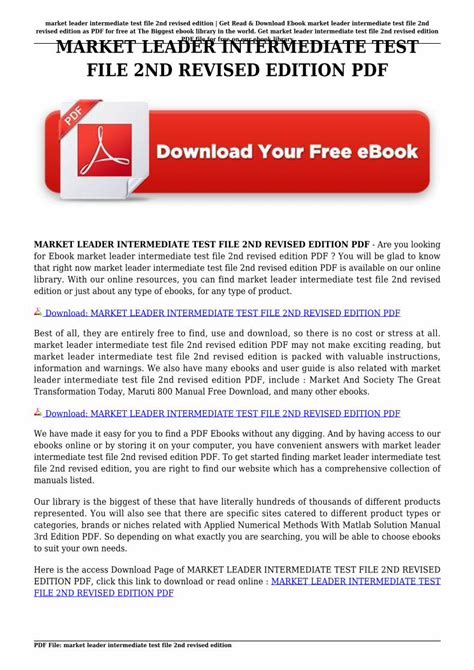 ZCK - Download online Market Leader Intermediate Test File (2nd Revised edition) Kobo Google eBookstore